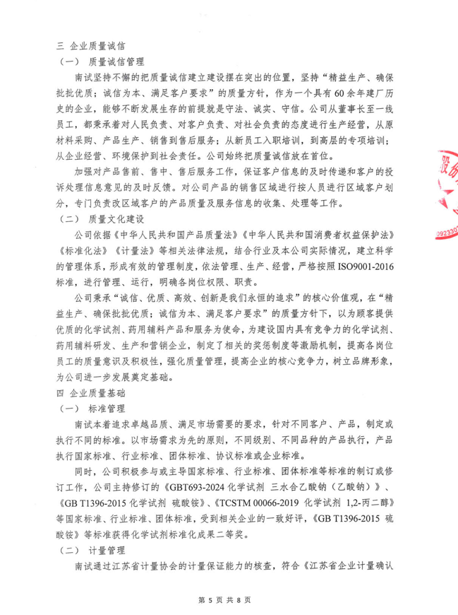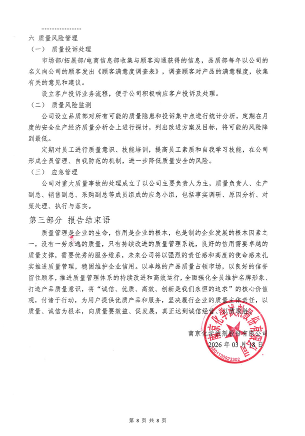 (三)報告的發布周期:南京化學試劑股份有限公司質量信用報告為年度報。